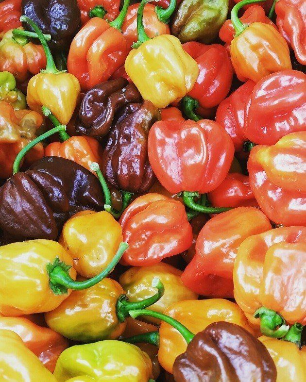 So how hot can you go? Bell peppers are at the bottom of the spectrum. They score a whopping 0 on the Scoville scale. Sticking with the peppers we grow here at Piedmont Produce, Banana peppers come in second at 100-1000. The most common hot pepper, the jalapeno, comes in between 3,500 and 10,000 heat units. The red jalapenos usually score on the higher end of that range. Finally, the hottest pepper we grow is the mighty habanero which scores between 100,000-350,000! Now that’s a hot pepper! Habaneros were actually listed in the Guinness World Records as being the hottest pepper in the world back in 1999. Since then some things have changed…